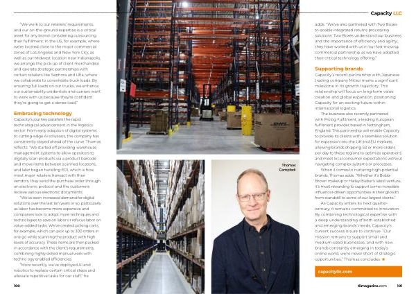 As Capacity enters its next quartercentury , it remains committed to innovation . By combining technological expertise with a deep understanding of both established and emerging brands ’ needs , Capacity ’ s current success is sure to continue . “ Our mission remains to support small and medium-sized businesses , and with new brands constantly emerging in today ’ s online world , we ’ re never short of strategic opportunities ,” Thomas concludes . ■