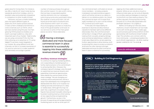 tapping into these additional revenue streams . While we can only do so much to influence ticket sales , we can and will diversify our ancillary revenue strategies to maximize income from non-fare revenue streams . This will be a key part of ensuring that moving forward c2c is a financially sustainable and profitable operation ,” he enlightens .