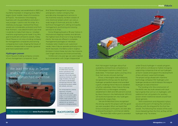 “ The company was established in 2007 , but my father has been in shipping since 1984 ,” begins Quint Vedder , Head of Innovations & Projects . “ He started in the shipping business with my grandfather and when I was younger , I used to visit the ships . At a relatively young age , I realized that these vessels are considerable pollutants and from that moment , I was determined to see what I could do to make them less so . I studied maritime engineering and made it my life ’ s goal to build zero-emissions vessels . Today , Maris Fiducia is not only a holding company for management companies and owning companies but is also shaping the future of maritime transportation towards a greener and more sustainable world .”