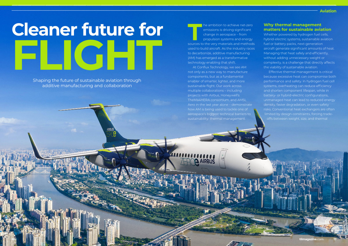 At Conflux Technology, we see AM not only as a new way to manufacture components, but as a fundamental enabler of smarter, lighter, and more sustainable flight. Our work across multiple collaborations – including projects with Airbus, Honeywell’ s TheMa4HERA consortium, and AMSL Aero in the last year alone – demonstrate how AM is being used to tackle one of aerospace’ s biggest technical barriers to sustainability: thermal management.