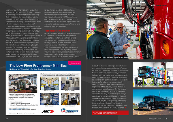 As the company relentlessly strives to improve its processes to deliver the best possible service to its customers, technology and training are key components of its growth strategy, Roman reveals.“ On the IT front, we are exploring what AI can do for us. With 13,000 buses on the road, the volume of incoming phone calls regarding various inquiries is significant, especially as our clients’ businesses evolve and their technicians change, or new people enter the industry. As 60