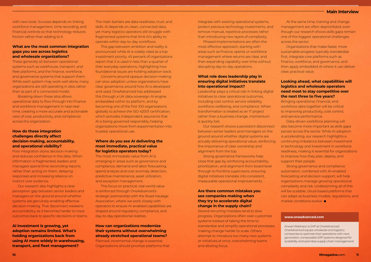 Anwen Robinson is SVP at OneAdvanced. OneAdvanced equips wholesale and logistics companies to optimize their operations with nextgeneration, composable ERP systems designed for scalability and seamless supply chain management.