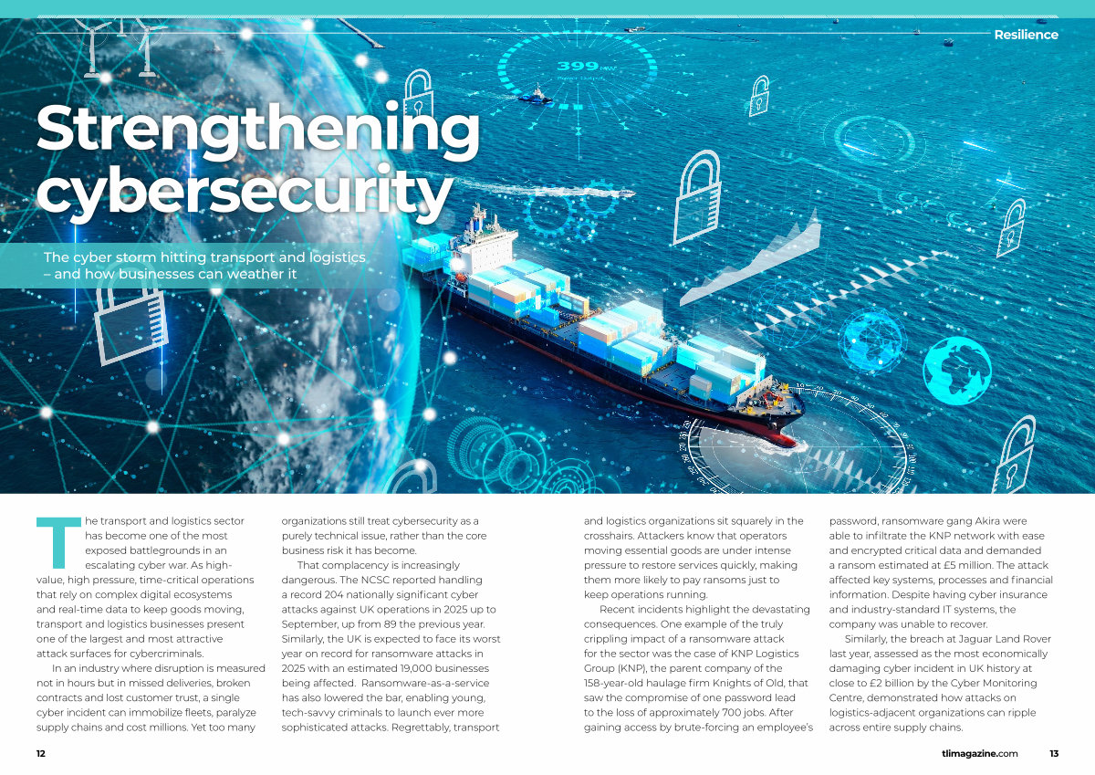 The transport and logistics sector has become one of the most exposed battlegrounds in an escalating cyber war. As highvalue, high pressure, time-critical operations that rely on complex digital ecosystems and real-time data to keep goods moving, transport and logistics businesses present one of the largest and most attractive attack surfaces for cybercriminals.