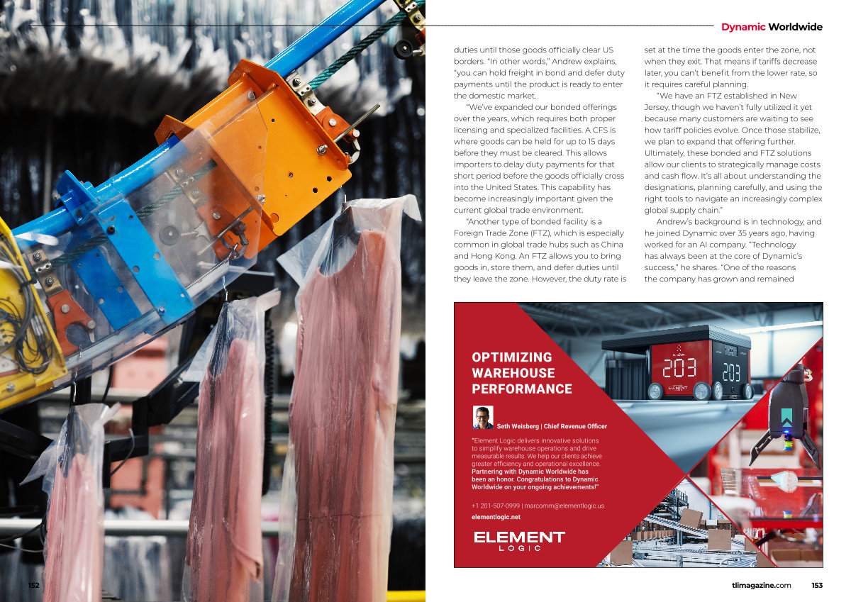 Dynamic Worldwide duties until those goods officially clear US borders.“ In other words,” Andrew explains,“ you can hold freight in bond and defer duty payments until the product is ready to enter the domestic market.