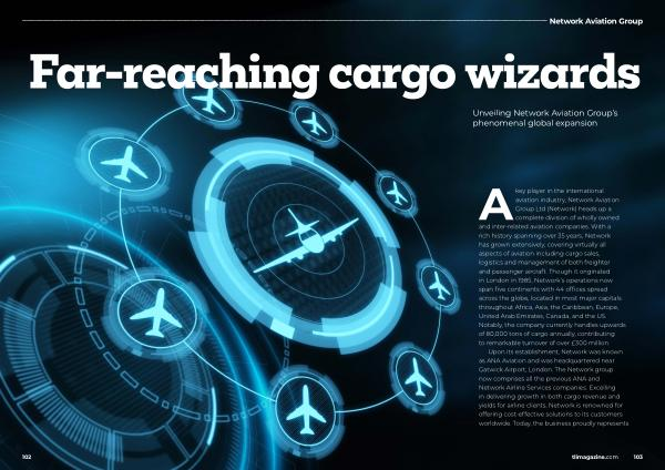 A key player in the international aviation industry , Network Aviation Group Ltd ( Network ) heads up a complete division of wholly owned and inter-related aviation companies . With a rich history spanning over 35 years , Network has grown extensively , covering virtually all aspects of aviation including cargo sales , logistics and management of both freighter and passenger aircraft . Though it originated in London in 1985 , Network ’ s operations now span five continents with 44 offices spread across the globe , located in most major capitals throughout Africa , Asia , the Caribbean , Europe , United Arab Emirates , Canada , and the US . Notably , the company currently handles upwards of 80,000 tons of cargo annually , contributing to remarkable turnover of over £ 300 million .